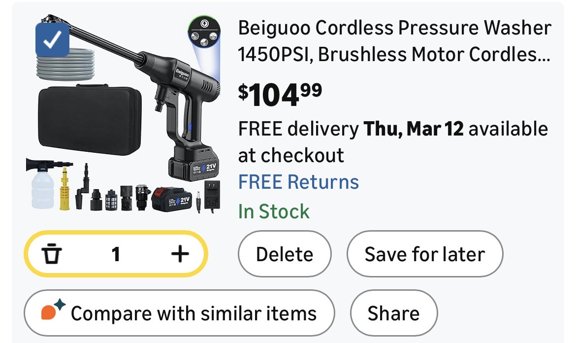 Cordless Pressure Washer 1450PSI, Brushless Motor Cordless Power Washer Gun #A6