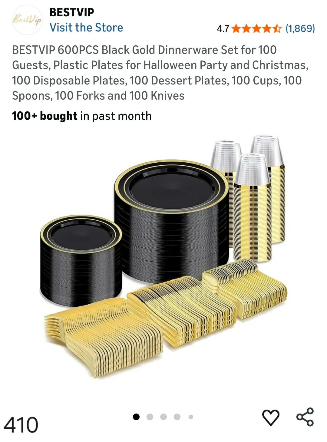 BESTVIP 600PCS Black Gold Dinnerware Set. Lv410