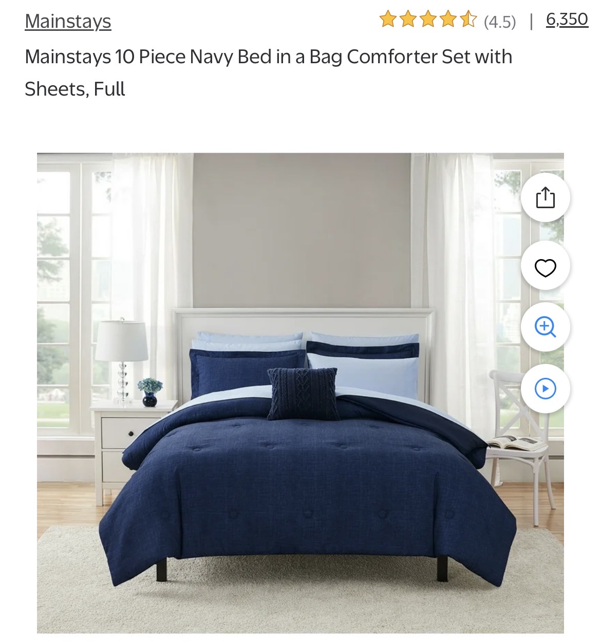 Mainstays 10 Piece Navy Bed in a Bag Comforter Set with Sheets #H30