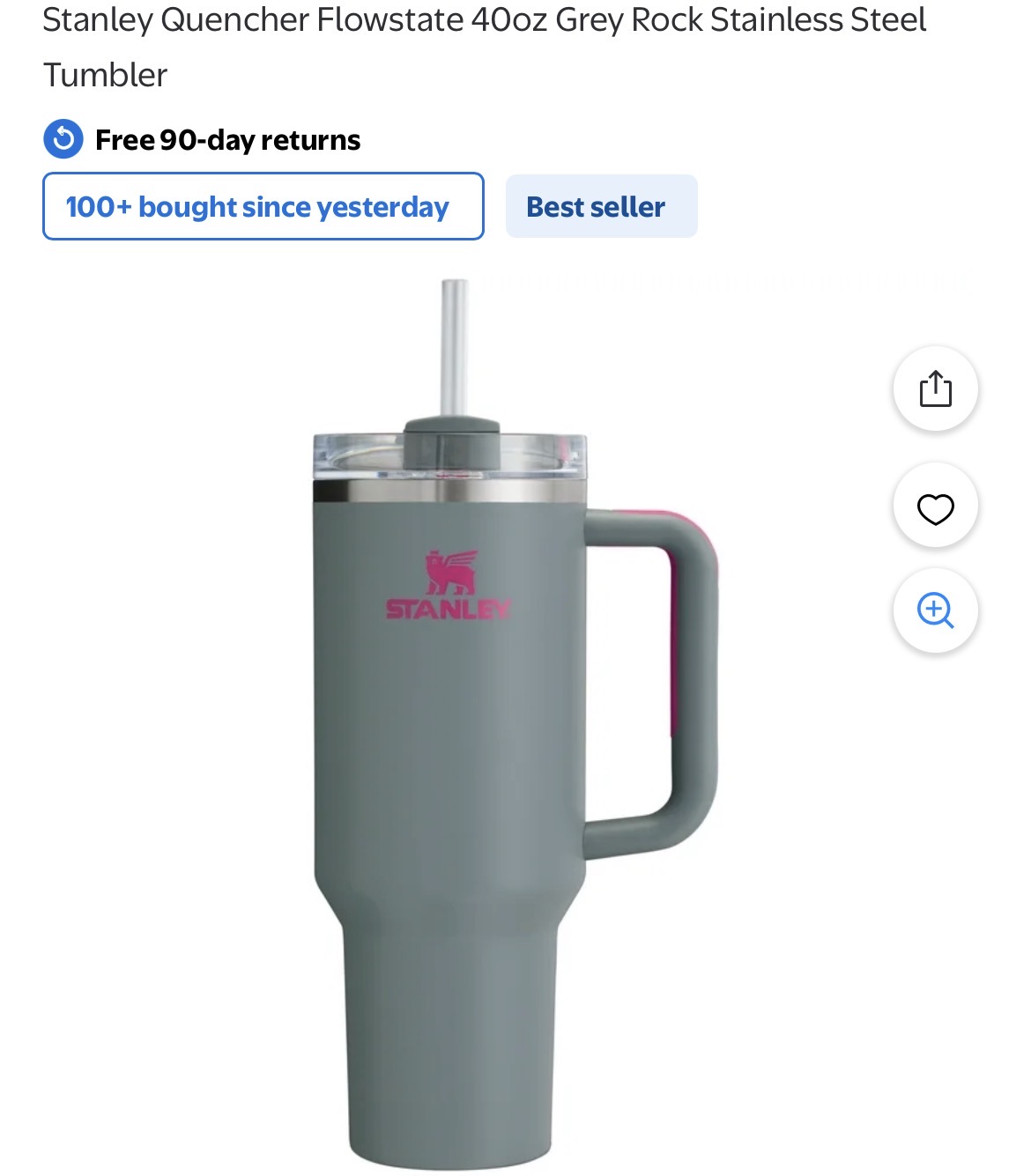 Stanley Quencher Flowstate 40oz Grey Rock Stainless Steel Tumbler #H51