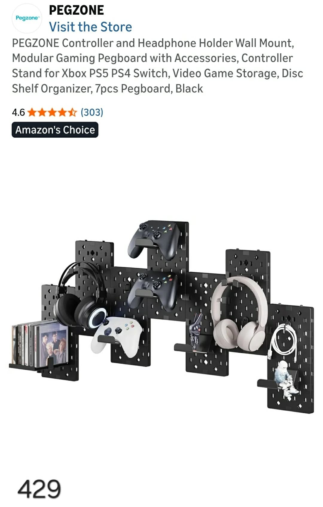 PEGZONE Controller and Headphone Holder Wall Mount. Lv429