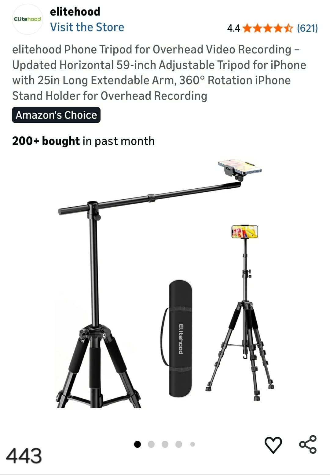 elitehood Phone Tripod for Overhead Video Recording. Lv443