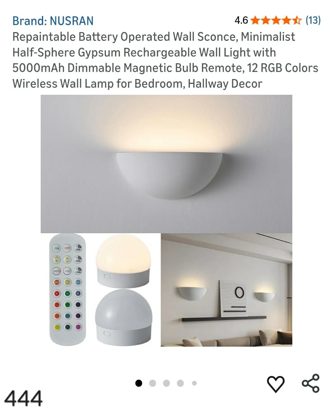 Repaintable Battery Operated Wall Sconce. Lv444