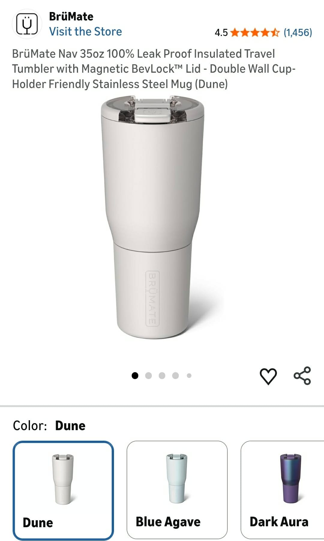 BrüMate Nav 35oz 100% Leak Proof Insulated Travel Tumbler with Magnetic BevLock™ Lid - Double Wall Cup-Holder Friendly Stainless Steel Mug (Dune). Lv479